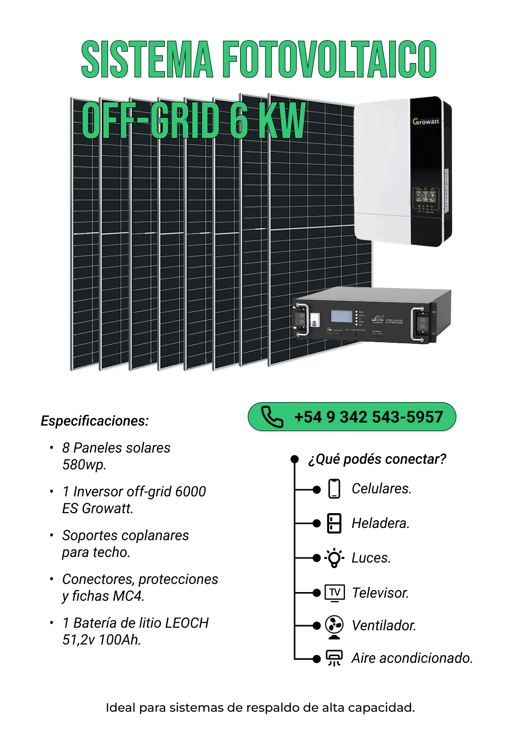 Kit Solar Off-Grid 6kW con Batería de Litio Growatt – 8 Paneles 580W
